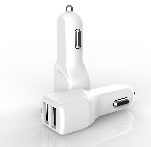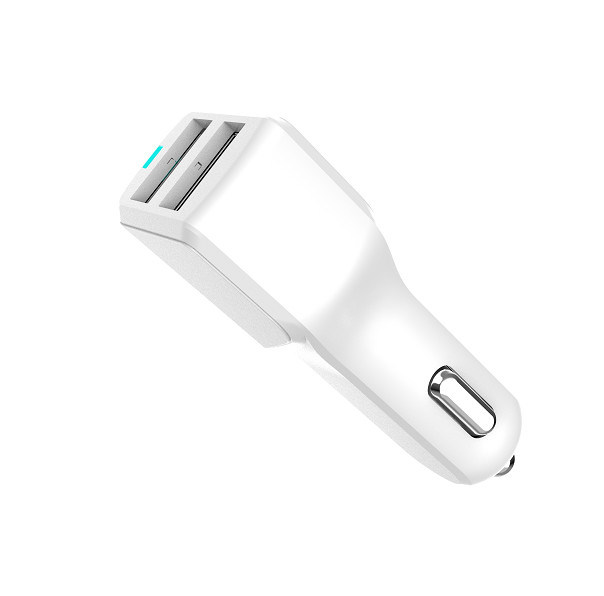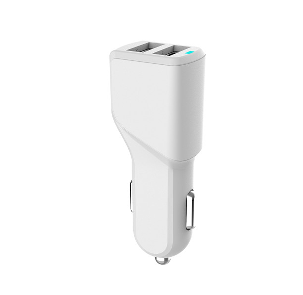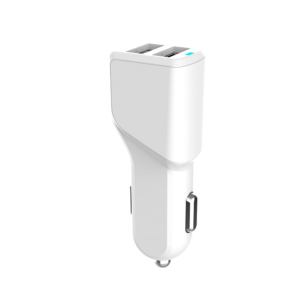 Chargeur de voiture de doubles accès avec IC futé 2.4A blanc
